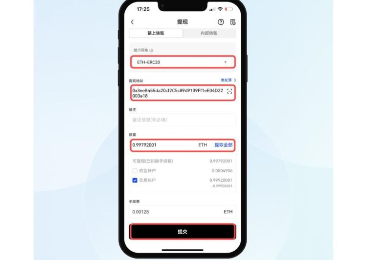回到歐易交易所的提現頁面,將剛才從imToken復制的ETH收款地址粘貼到相應的字段中。接下來,輸入您希望提現的數量。請仔細核對所有信息,包括地址和數量,確保沒有錯誤。確認無誤后,點擊“提交”。