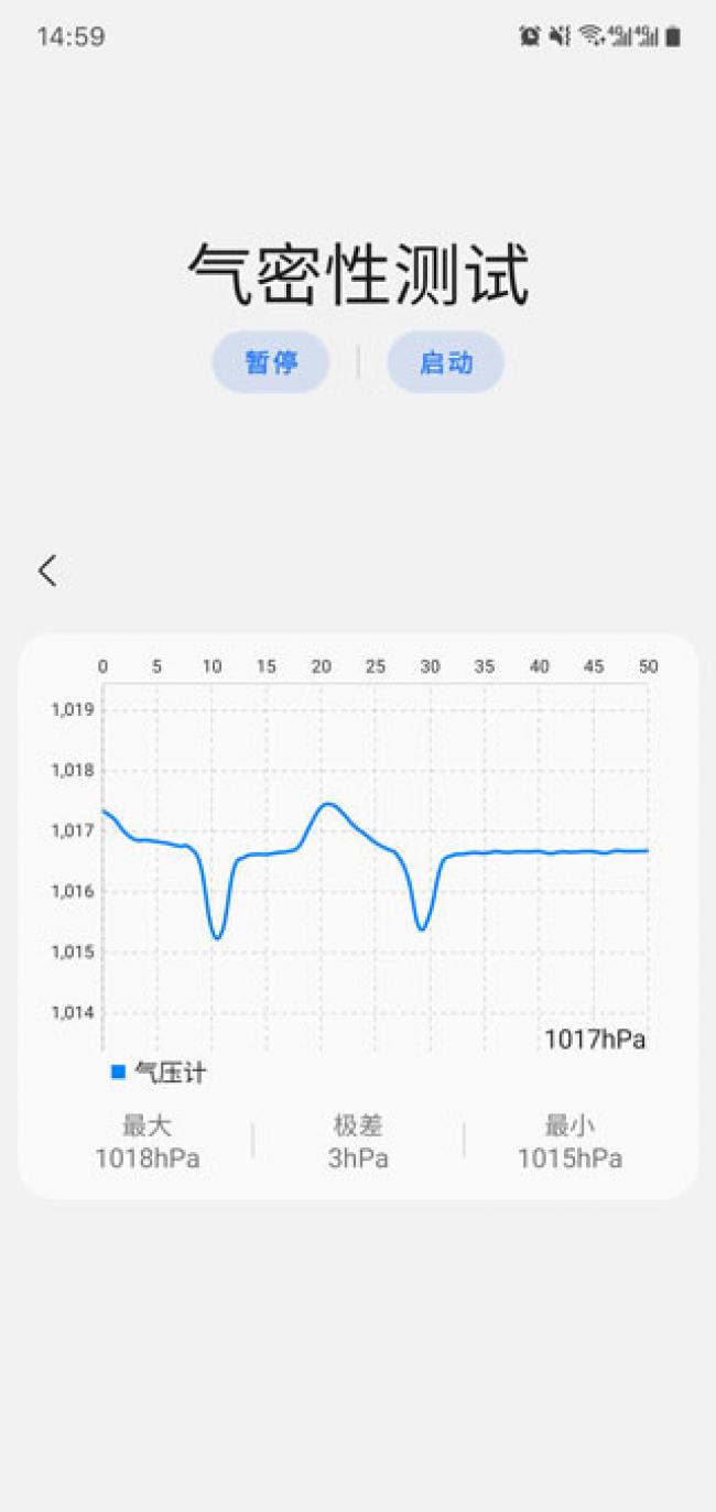 3、試著按下屏幕,圖中的極點(diǎn)數(shù)字愈大,表示密封程度愈低,千萬不要下水去試驗(yàn)哦。
