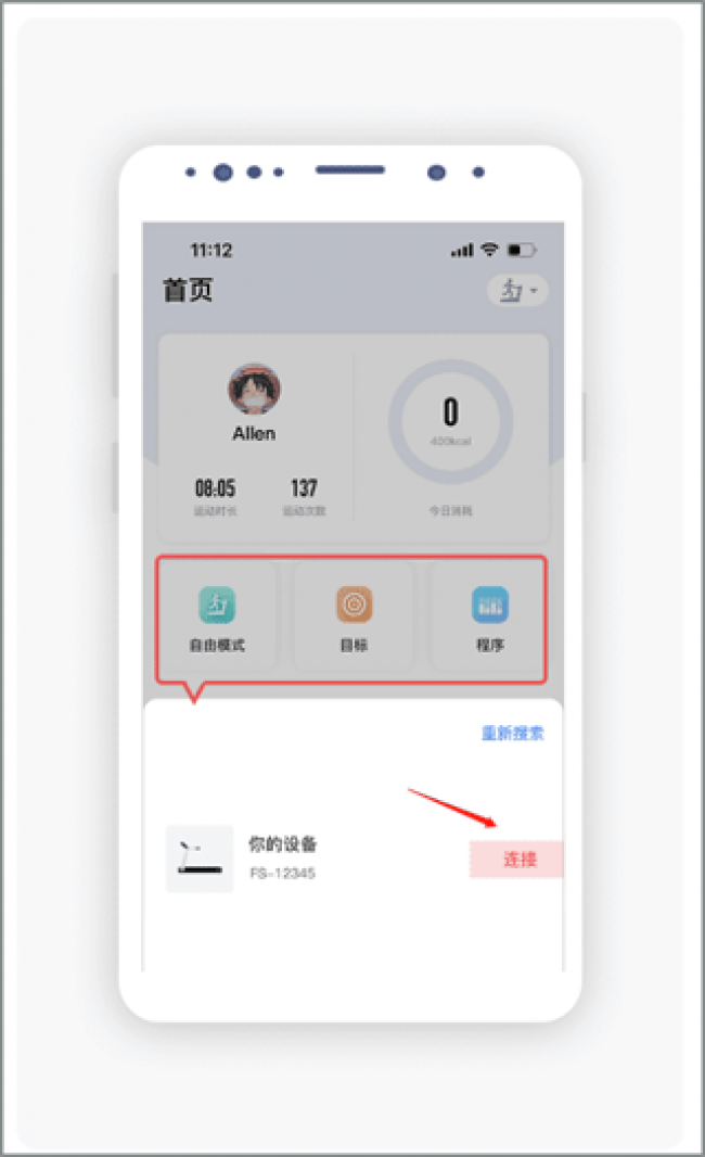 4、選擇方式與裝置相連,在裝置上按下任意動作,按下啟動鍵即可與裝置相連。
