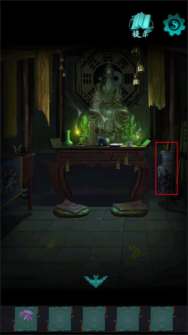 6、想要看到花瓶中的相關資料,必須要收集齊這五樣東西,香、花、燈、水、果,這三樣已經在祭壇上有了,你要收集齊這三樣東西。