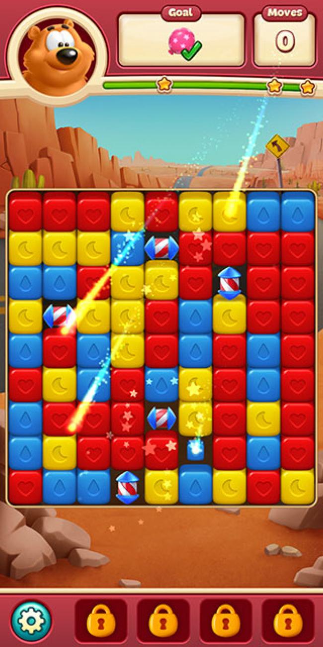 1、卡通爆炸游戲充分利用每一個消除的機會,增加游戲的深度。玩家需要專注于道具和得分目標。