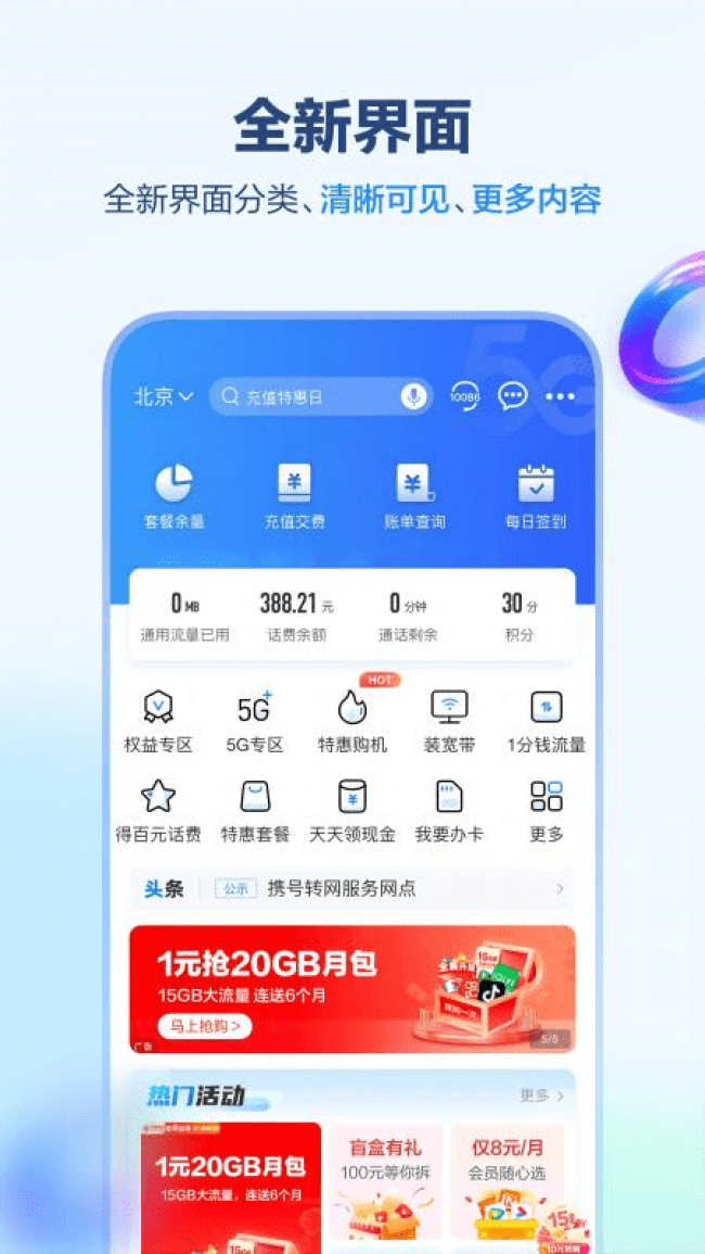 2.包括免費領取流量、在線零流量等,豐富的優(yōu)惠活動信息,讓用戶以更低廉的價格享受更多通信服務。
