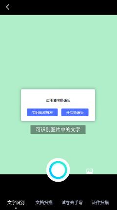 2、該程序配備文字識別、文件掃描、試卷手寫去除、身份證掃描等功能。您可以直接拍照,也可以點擊圖標,從相冊中選擇需要處理的文件。