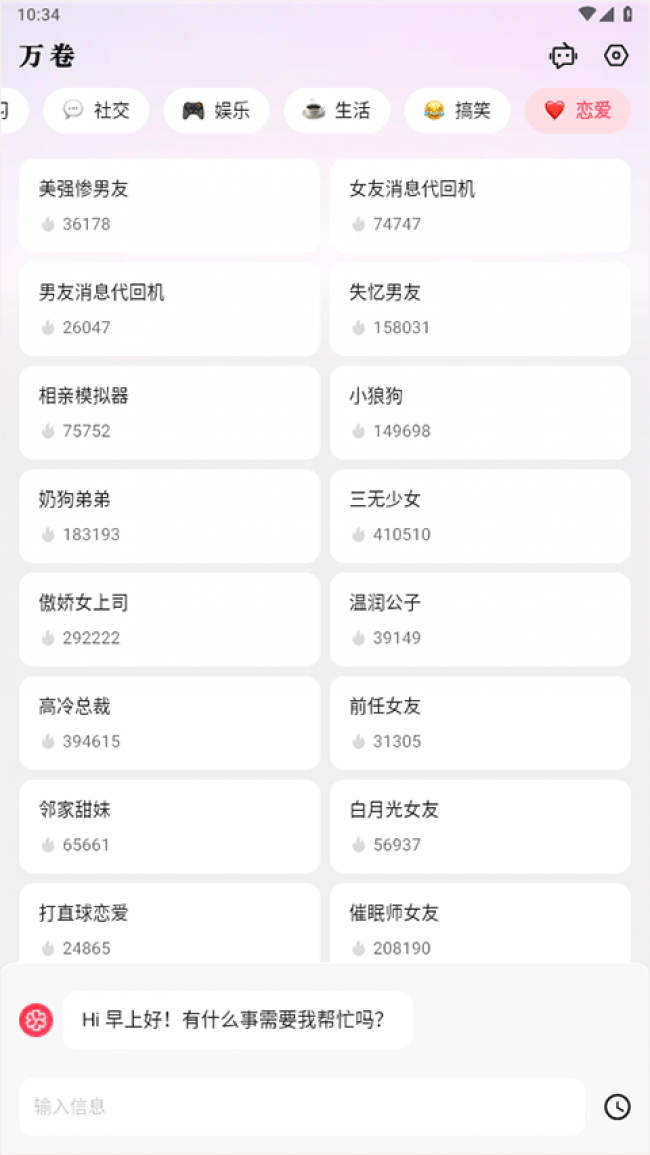 萬卷app官網安卓版是一款非常好玩的人工智能寫作軟件,該軟件可以幫助你完成一些日常的基礎寫作任務,但畢竟現在的人工智能還不是非常智能,如果要軟件處理一些深層次的帶有思想的寫作,那它便沒有那么有用了。但日常的文章寫作和作業作文之類的,還是很簡單很方便的。你只需要把自己需要的主題寫上去,加上一些限制信息和人設之類的設定,軟件就會自動給你生成文章。非常的高效便捷。