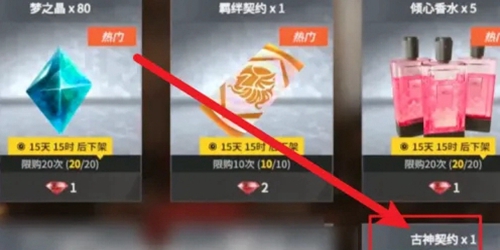 2、進入召喚商店后,你會發(fā)現(xiàn)有個叫古神契約的東西,點擊購買。