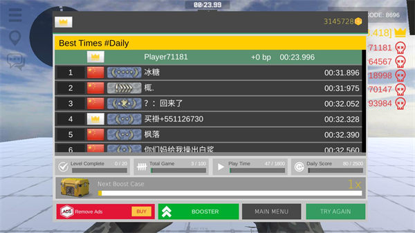 1、玩家需要不斷磨練技巧,提高通關速度。游戲中有多個精心設計的地圖和關卡,每個地圖都有不同的難度和挑戰。